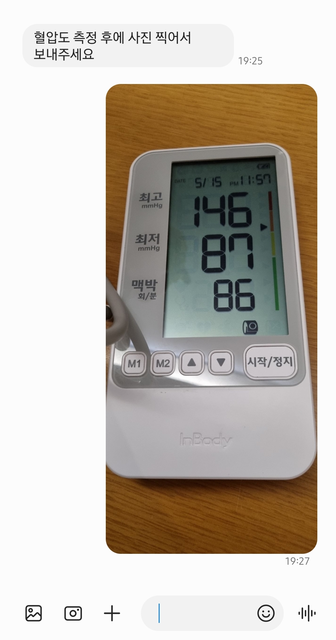 그러면 최초 활력 검사로 체온, 산소포화도, 혈압을 보냅니다.